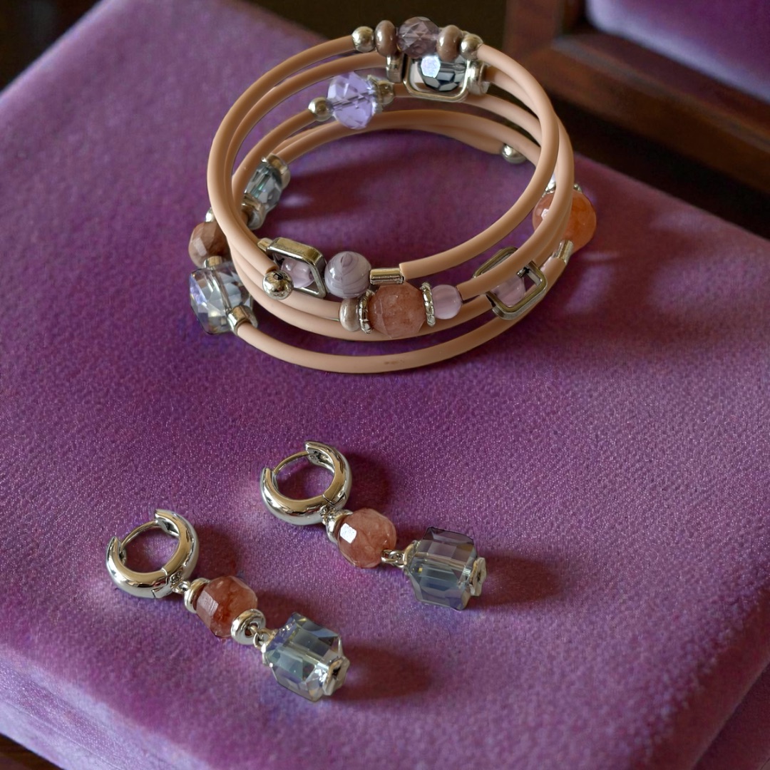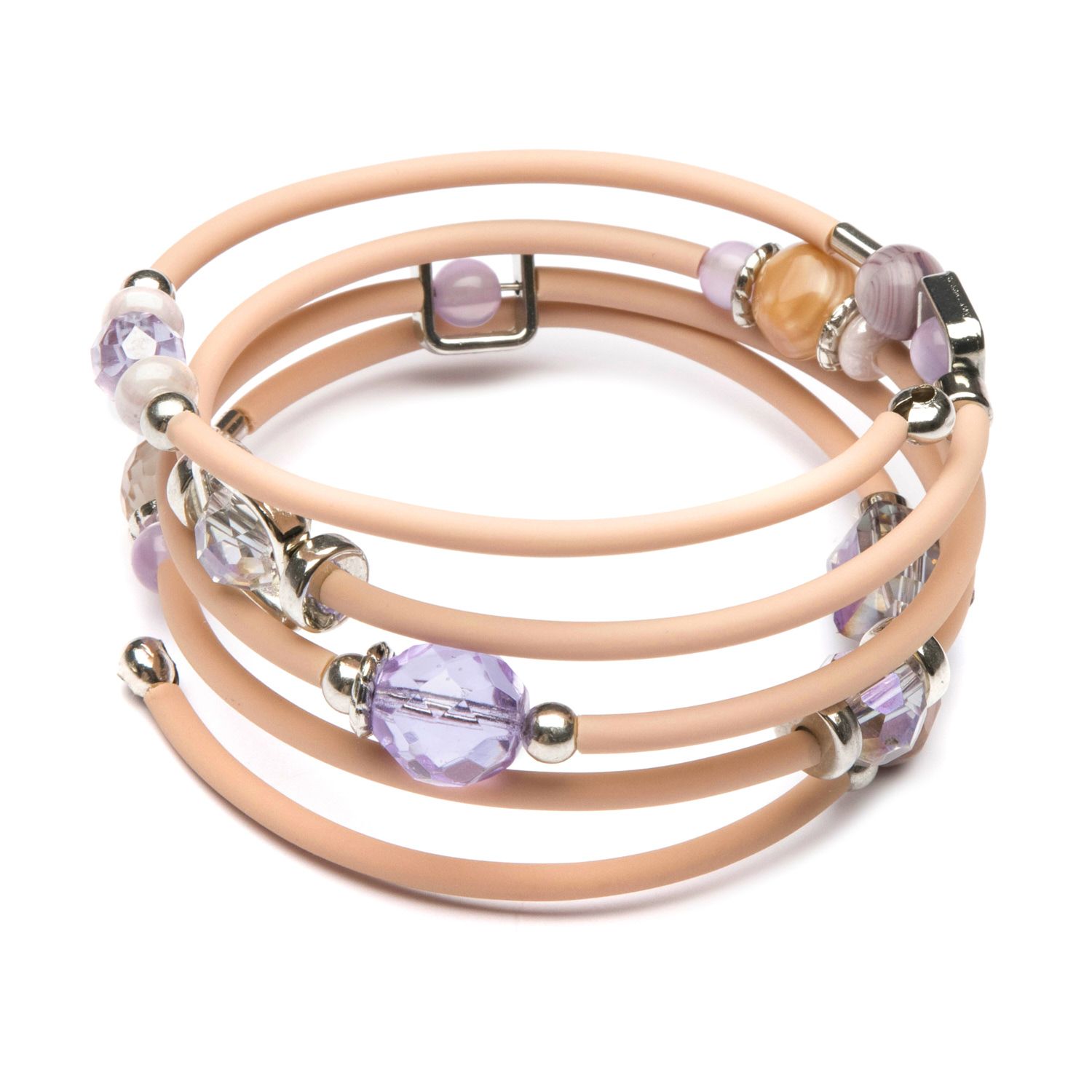 Оригинальный дизайнерский браслет, выполненный из натурального камня агата, чешского стекла и каучука на проволоке с памятью.