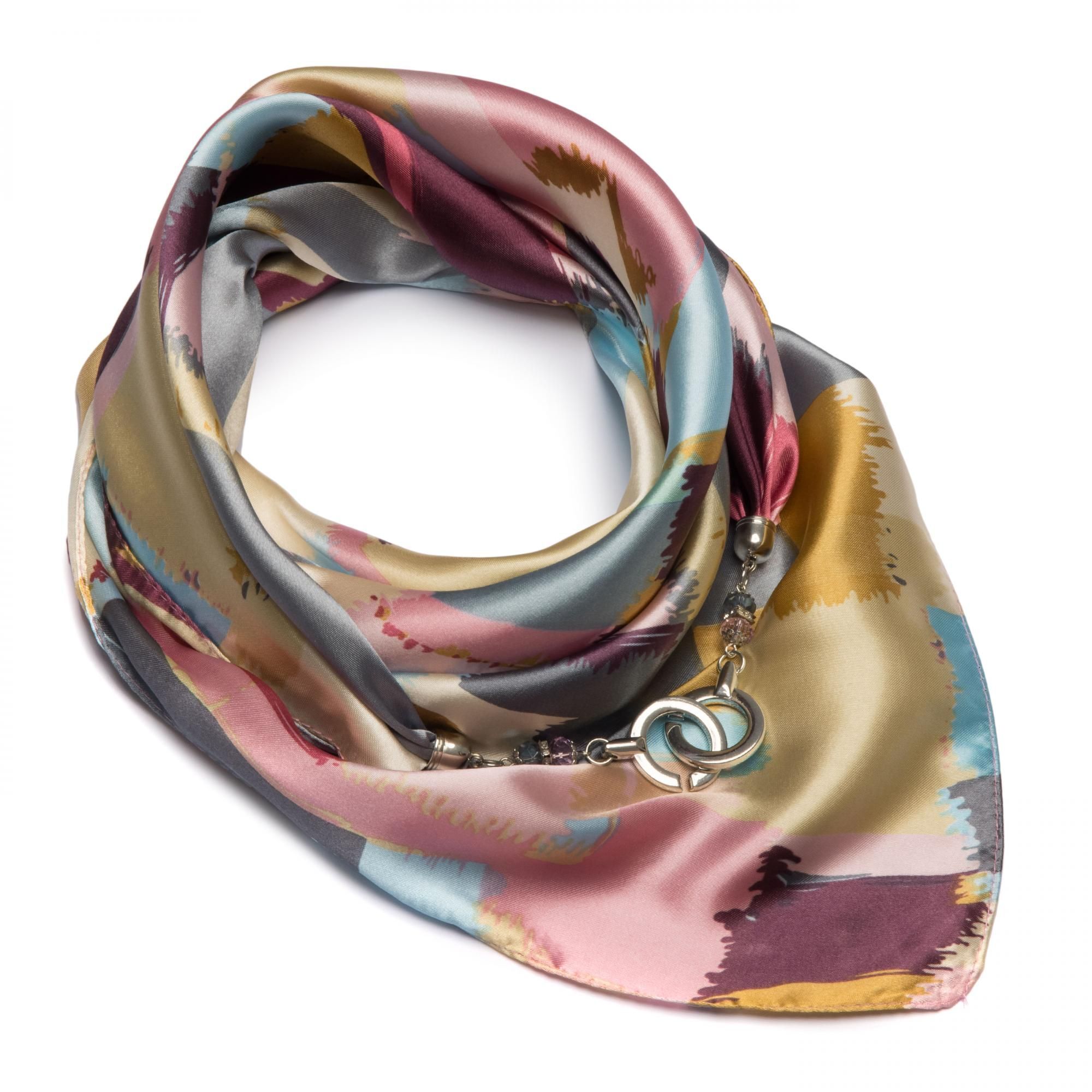 Благодаря замочку-карабинке такую косынку можно носить разными способами: вокруг шеи, в качестве браслета или даже пояса.