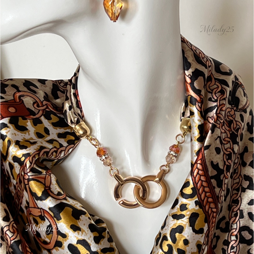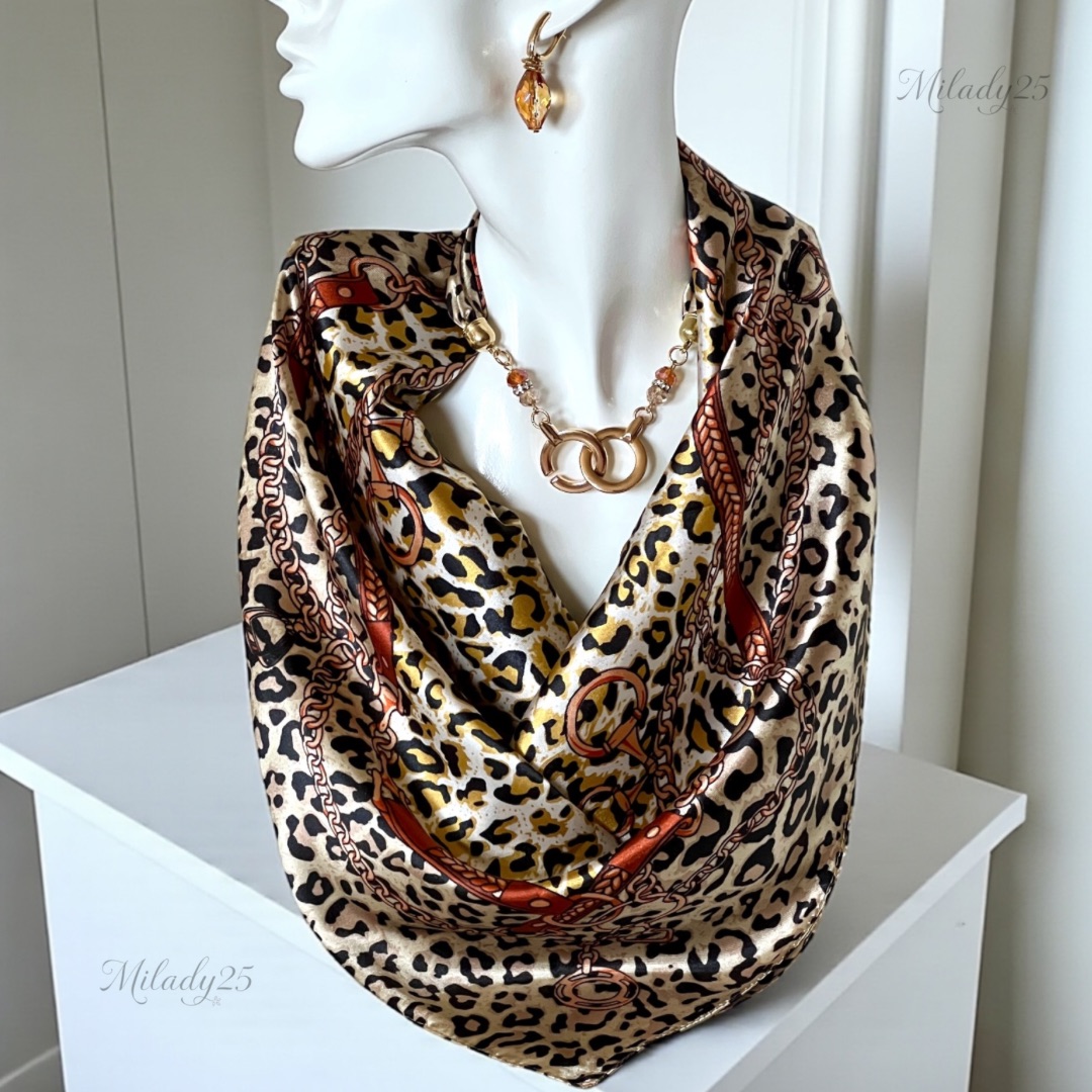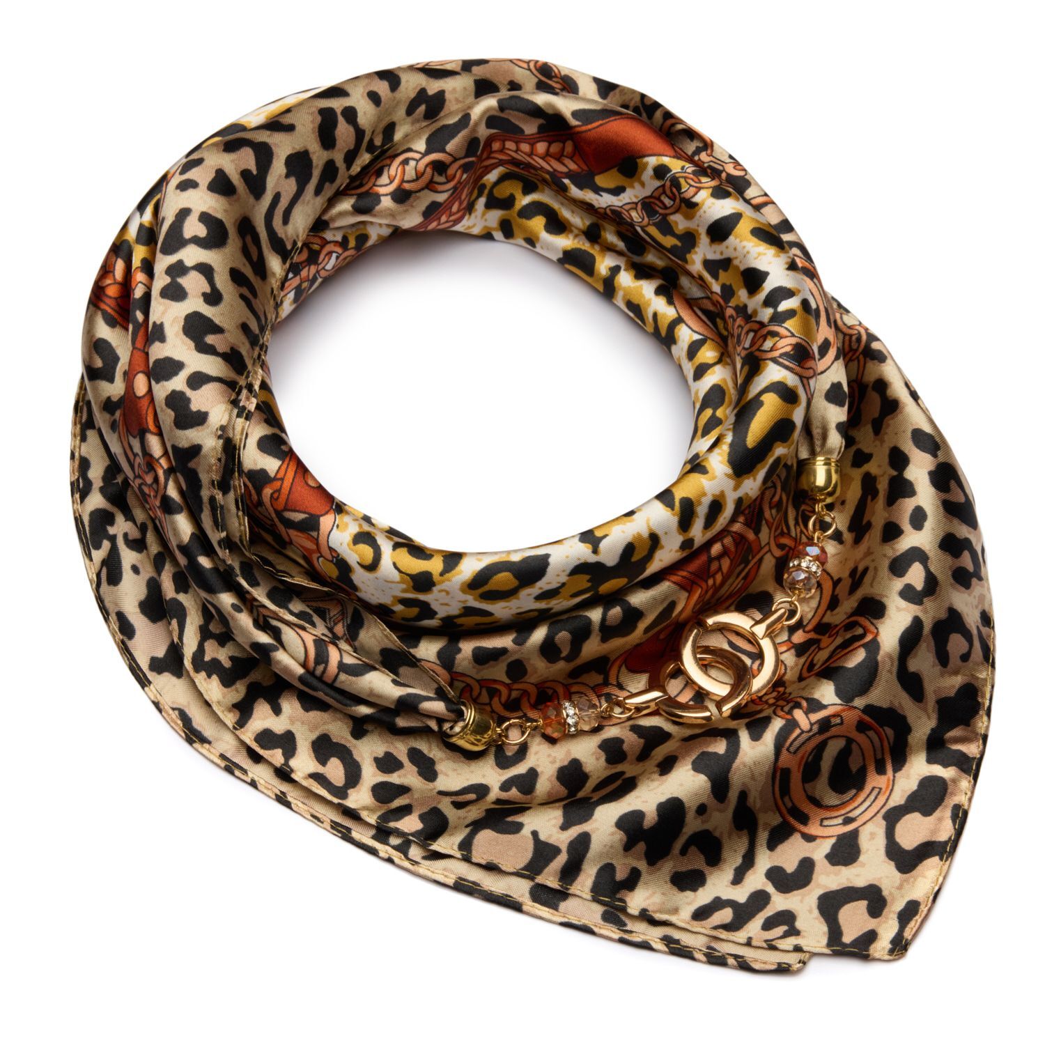 Благодаря замочку-карабину,ёё такую косынку можно носить разными способами: вокруг шеи, в качестве браслета или даже пояса.