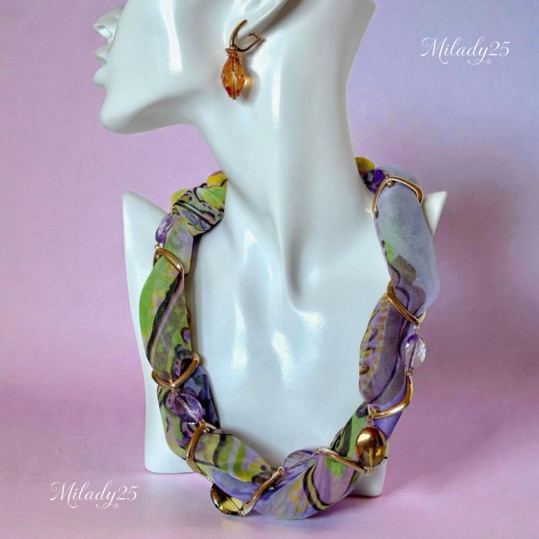 Нежное шифоновое ожерелье в современной стилизации со звеньями цепи и элементами чешской бижутерии.
