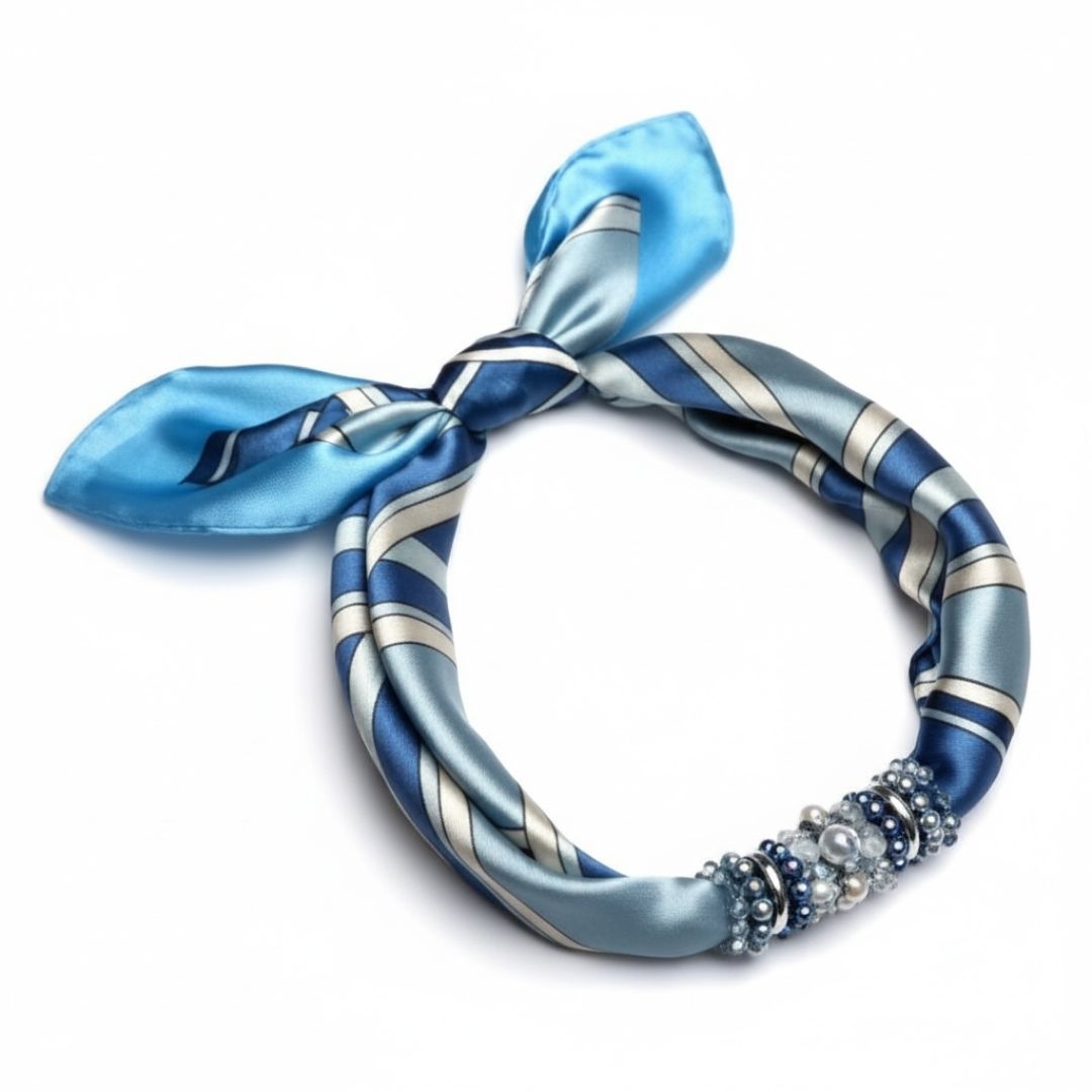 Стильная косынка-ожерелье с подобранной в тон ткани бижутерией гармонично дополнит ваш образ.