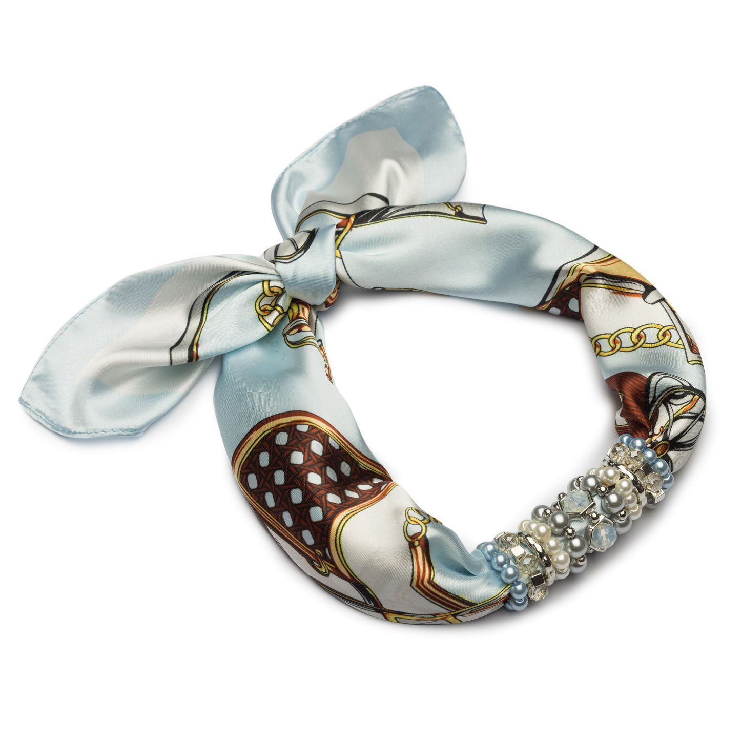 Стильная косынка-ожерелье с подобранной в тон ткани бижутерией гармонично дополнит ваш образ.
