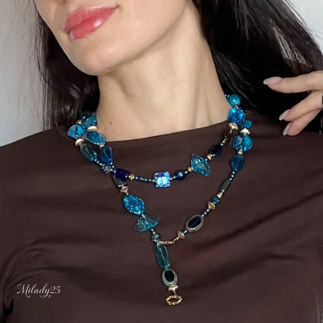 Украшение можно трансформировать и носить, меняя под своё настроение. Лариат отлично подходит для глубокого V-образного выреза, топов с открытыми плечами и платьев с голой спиной (аксессуар можно носить на спине).