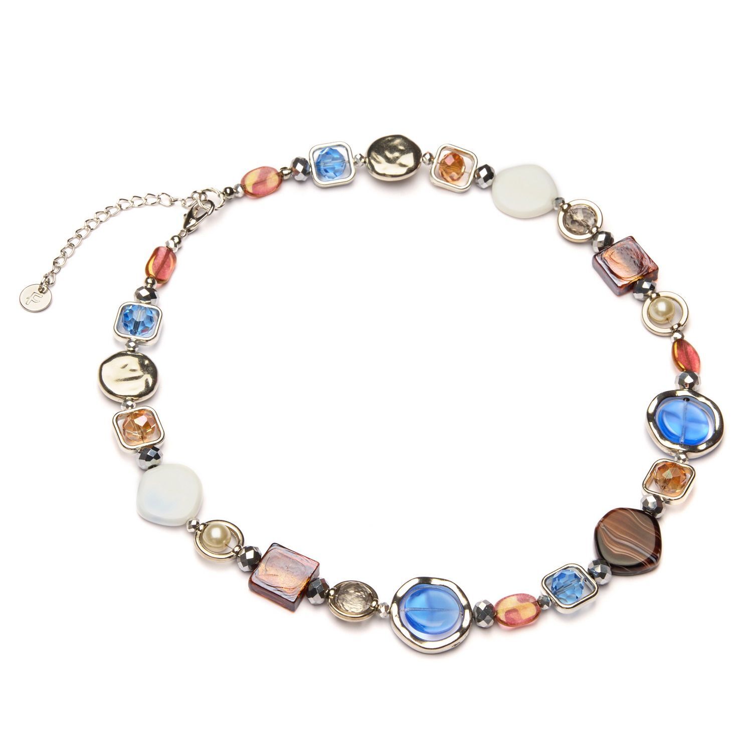 Дизайнерское ожерелье, выполненное из муранского и чешского стекла, дополнено искусственным жемчугом в сочетании с французским полимером и гипоаллергенным сплавом.