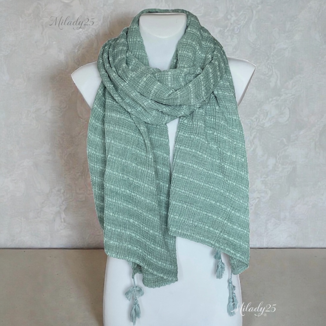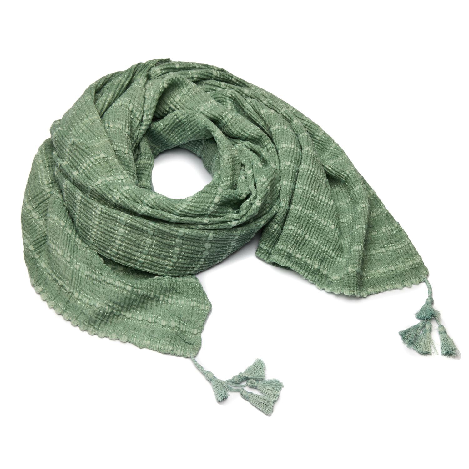 Палантин Симона из ткани с эффектом жатости, с декоративными кистями — лёгкий и дышащий аксессуар, который дополнит как повседневные, так и более нарядные образы.