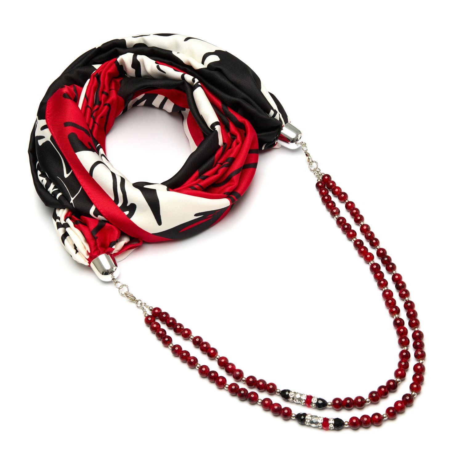 Дизайнерский платок-ожерелье выполнен из шелковой ткани с добавлением вискозы.