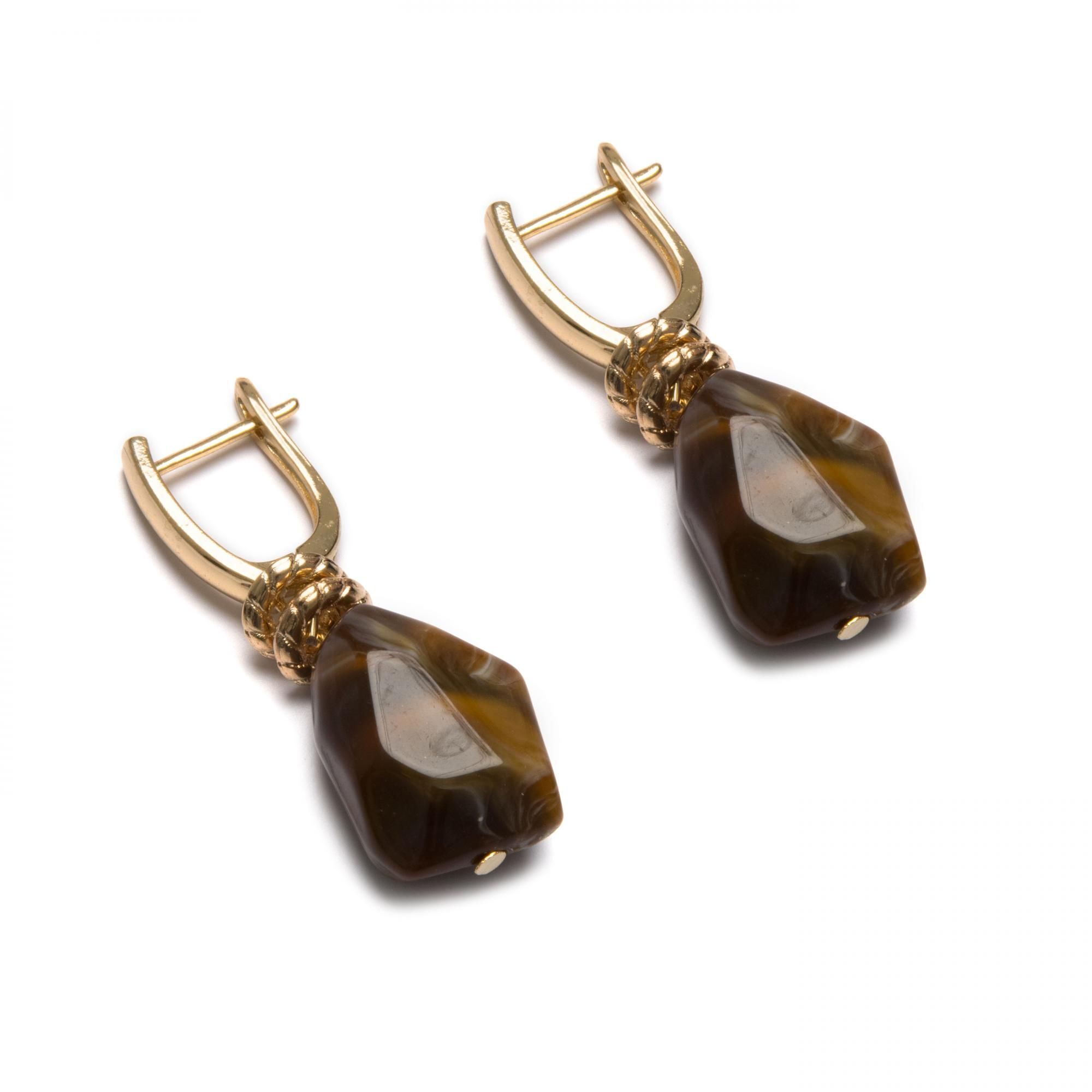 Оригинальные серьги на английском замке с подвесками, выполненными из элементов французского полимера.