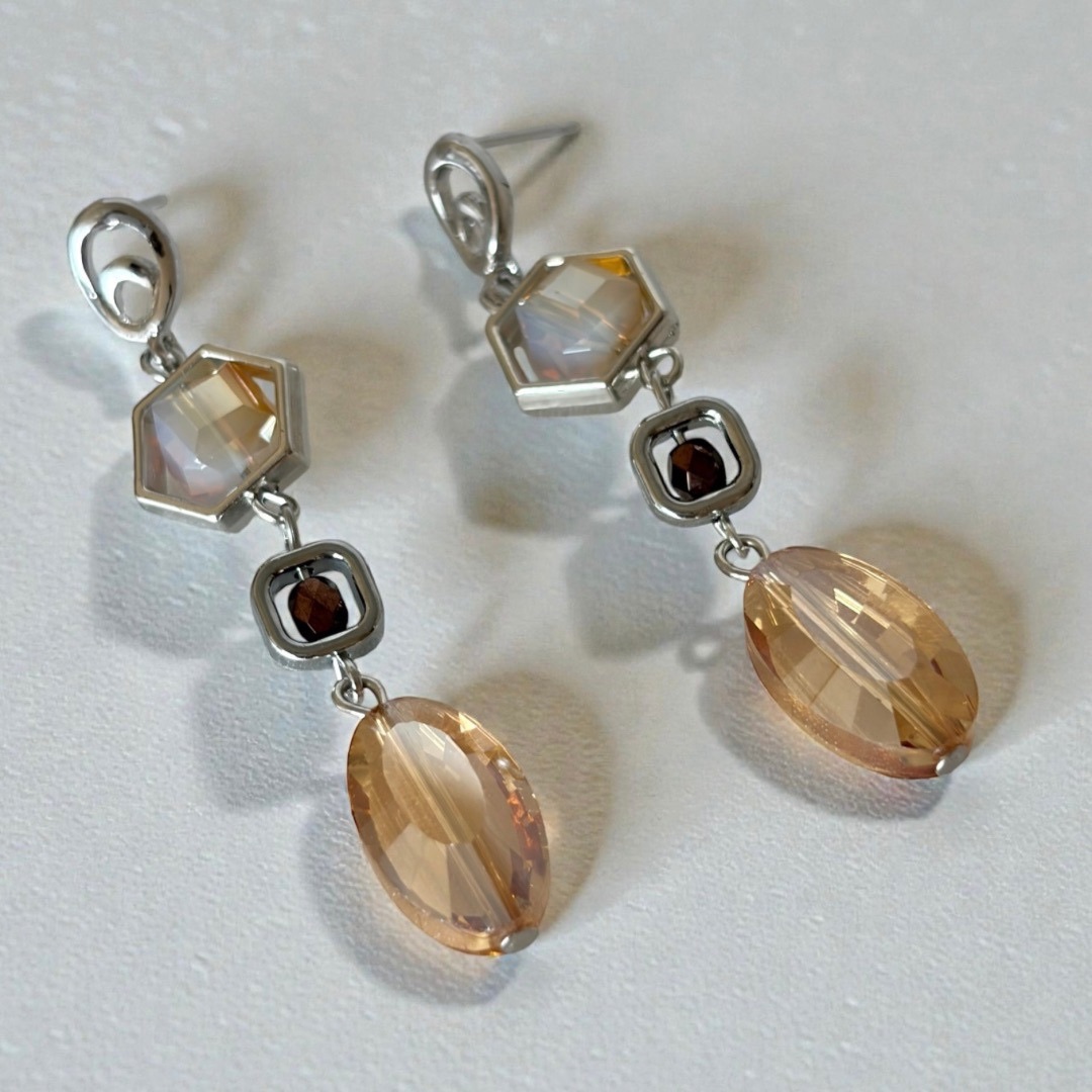 Оригинальные серьги - гвоздики с подвесками, выполненными из элементов чешского стекла. Длина подвески 6 см.