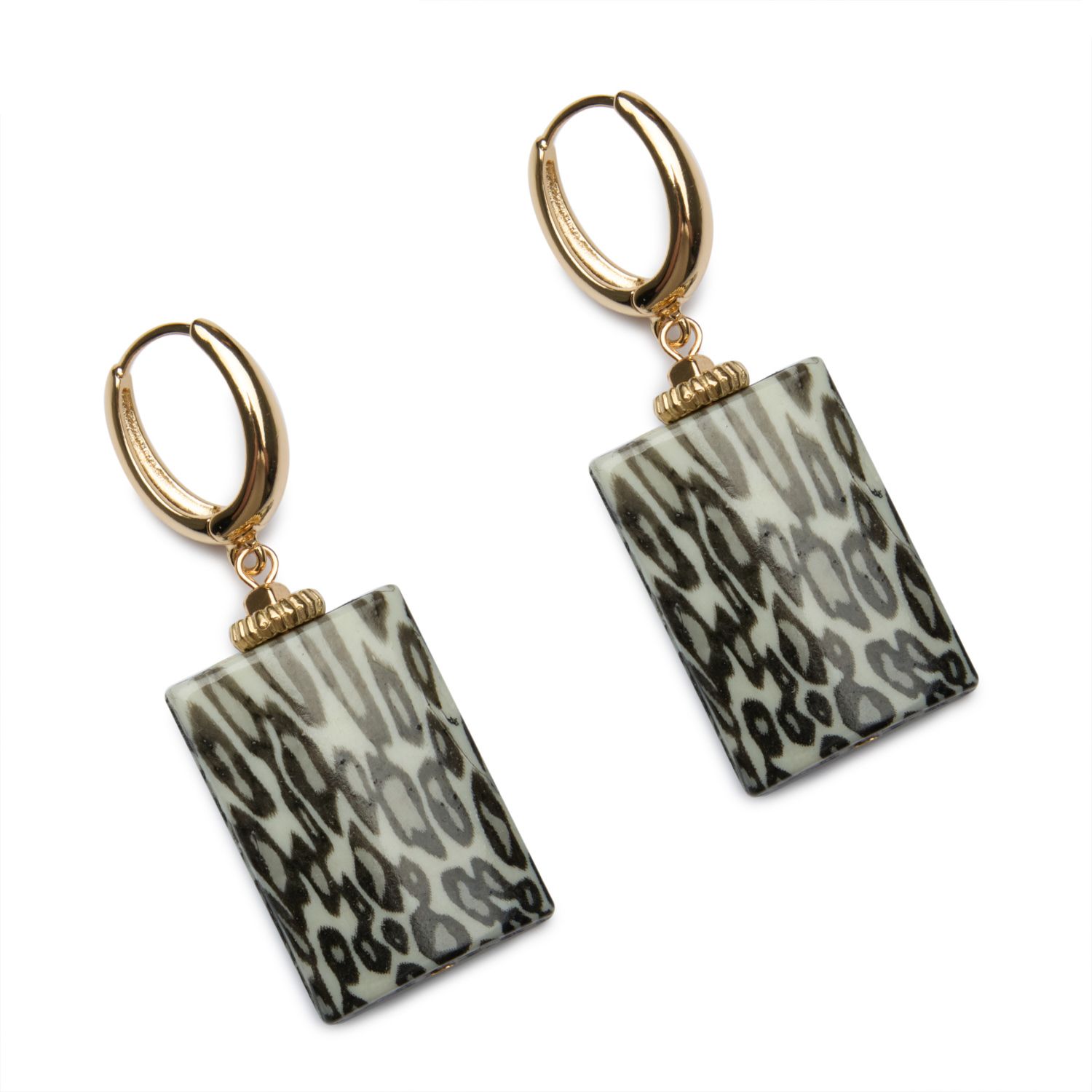 Оригинальные серьги на замке конго с подвесками, выполненными из элементов французского полимера.