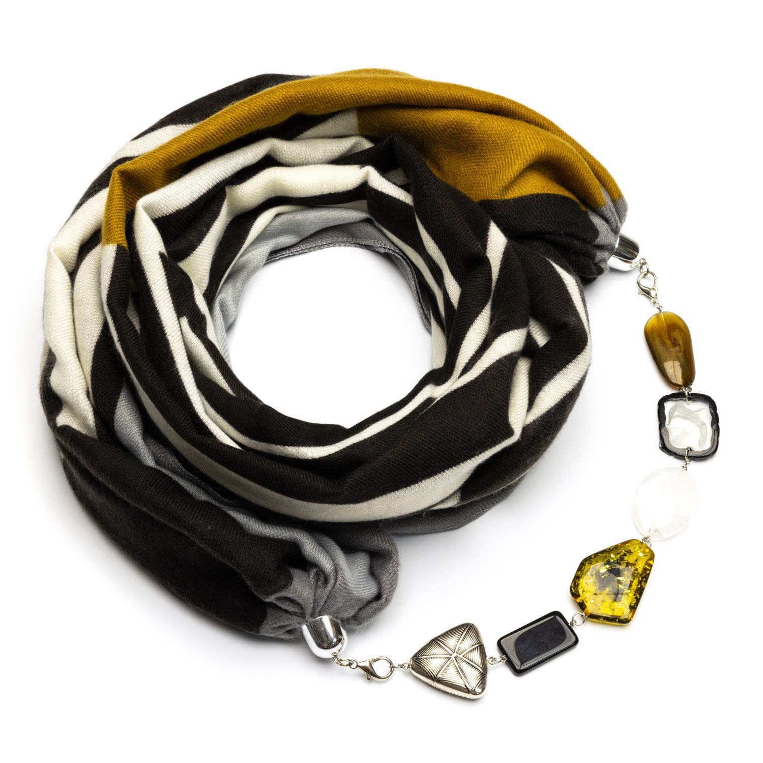 Двойная застежка-карабин облегчает уход за аксессуаром, позволяет при необходимости полностью отстегнуть ожерелье и носить шарф как классический снуд.