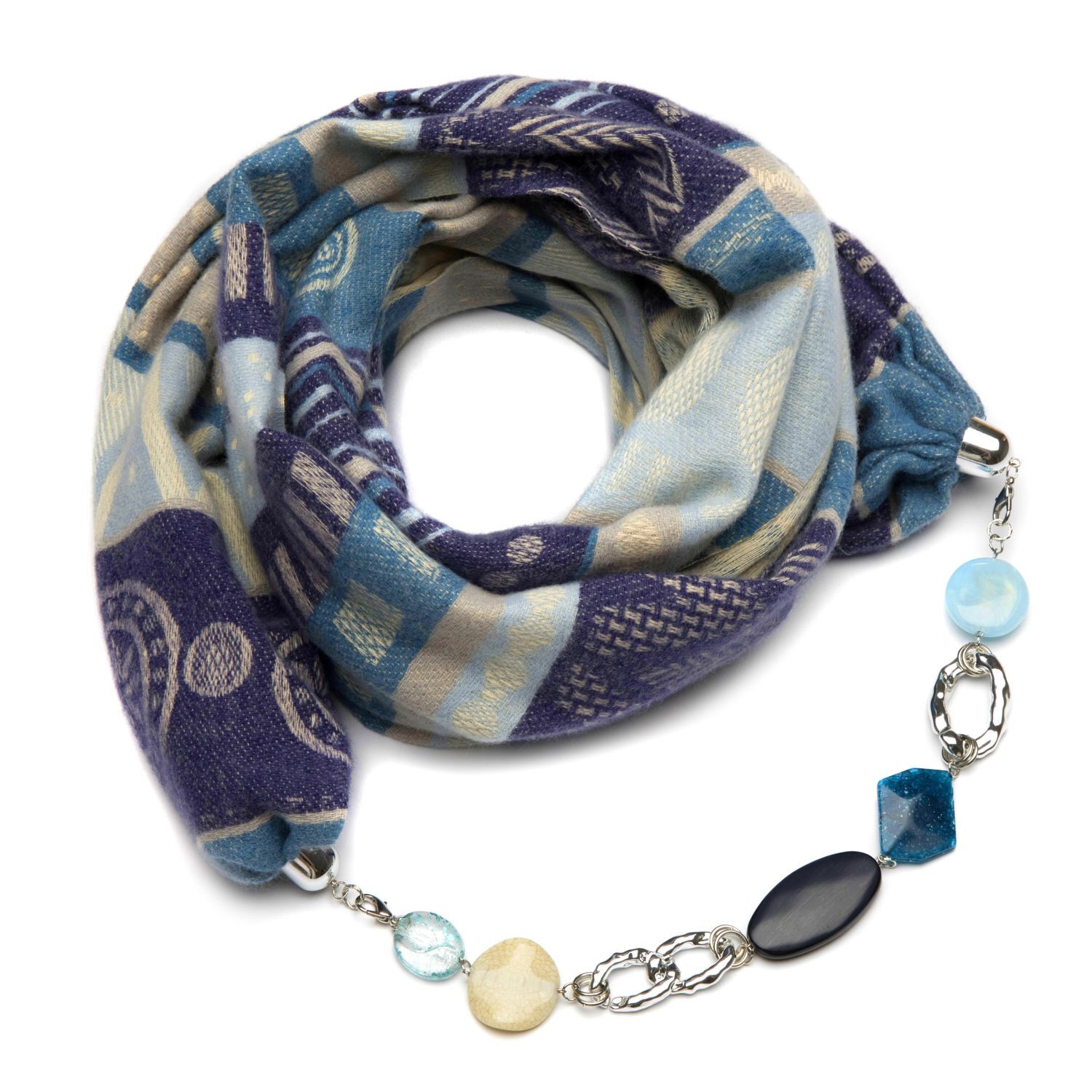 Бижутерия - оригинальное украшение, произведённое из качественного гипоаллергенного металла, практически невесомого французского пластика и керамики, нанизанное вручную и подобранное к каждому шарфу индивидуально.