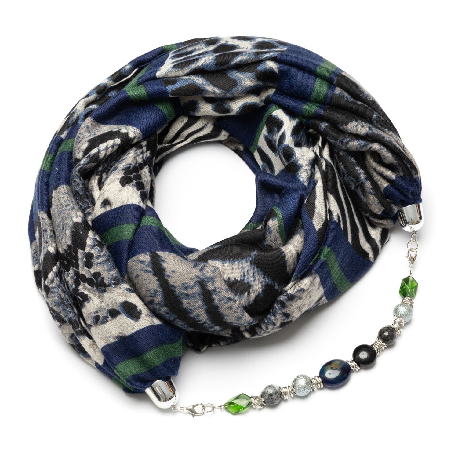 К палантину с помощью двух карабинов крепится украшение, выполненное из агата, чешского стекла и французского полимера.