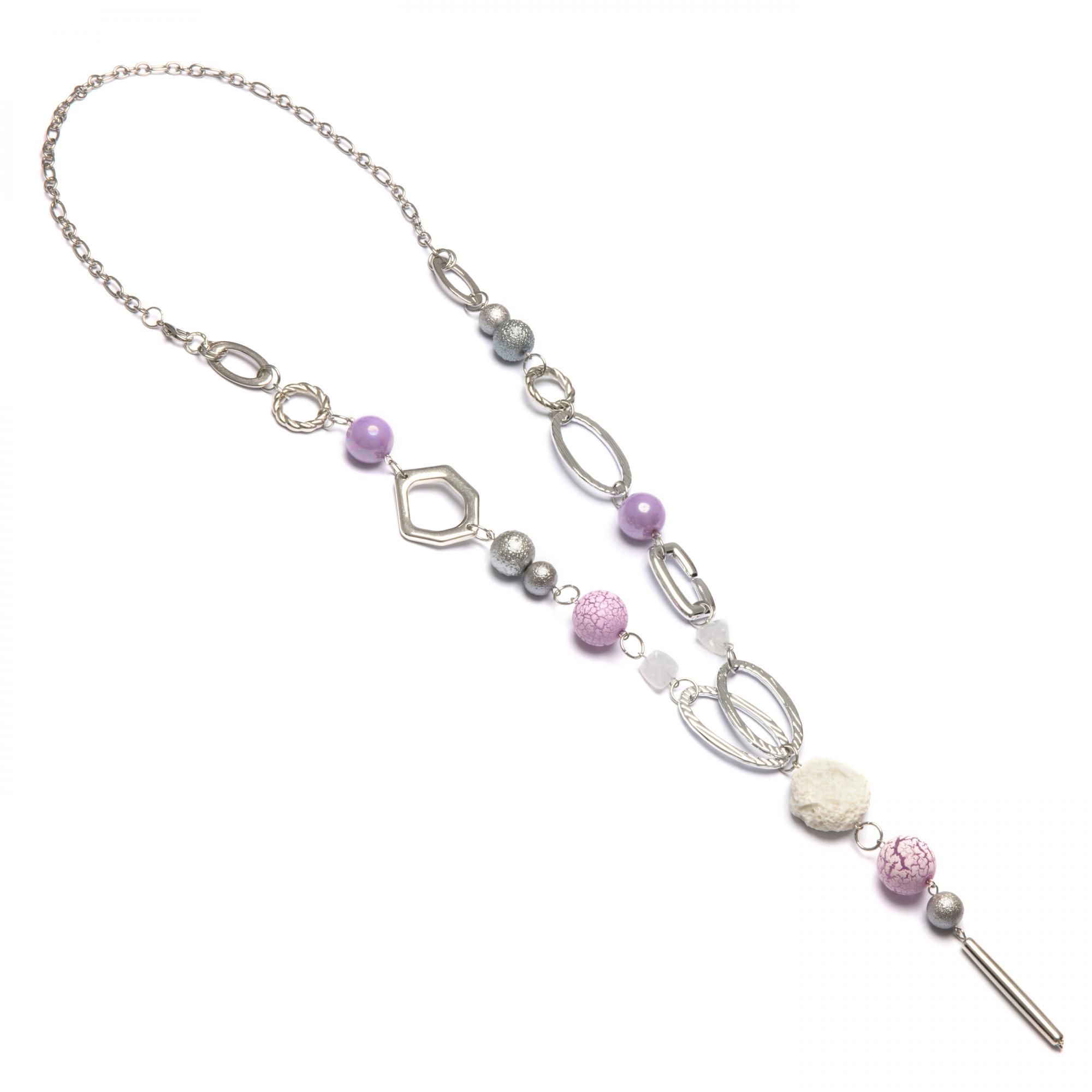 Стильный, эффектный сотуар. Лаконичная металлическая цепочка и акцентные крупные элементы из искусственного жемчуга и французского полимера создают ощущение спокойной элегантности, а бусины с эффектом "кракле" добавляют особый шарм.