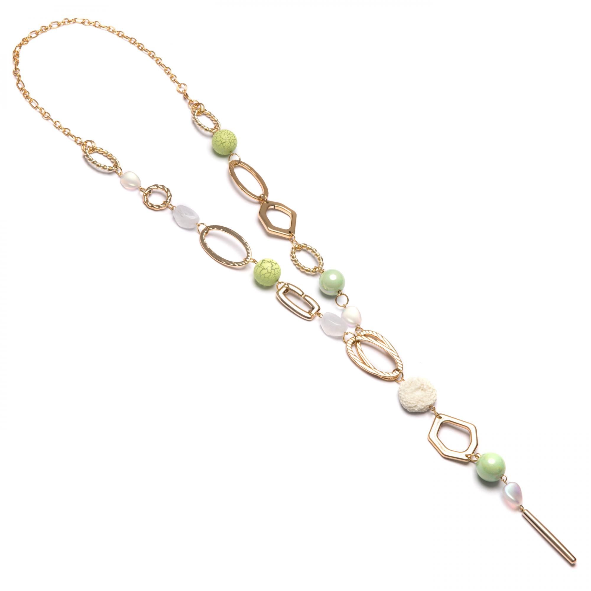 Стильный, эффектный сотуар. Лаконичная металлическая цепочка и акцентные крупные элементы из чешского стекла и французского полимера создают ощущение спокойной элегантности, а бусины с эффектом "кракле" добавляют особый шарм.